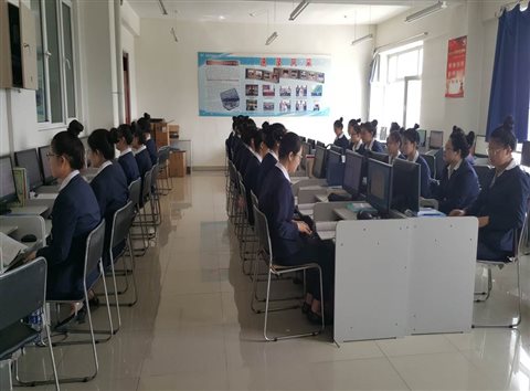 2、建筑与速录系的2017级文秘与速录1班(班主任国妍妍)学生服装整齐,教室一尘不染,学生都在认真练习速录技术;2017级文秘与速录三班(班主任于瑾昕)学生服装整齐,教室洁净,物品摆放整齐班主任老师在指导学生练习速录技术。