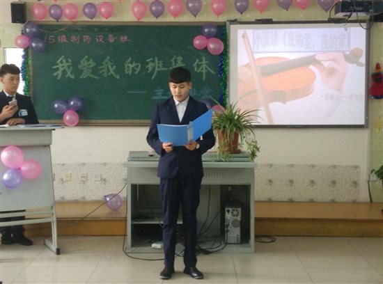 此次班会观摩的班级是2015级制药设备班,在班主任的组织下,经过同学们的精心准备,班会内容丰富多彩,形式多样,意义深远。班会由班长孙浩和文艺委员邹文博主持,伴随着一首激动人心的合唱《明天会更好》,此次班会拉开了帷幕,诗朗诵《共同的梦想》震撼全场,这个梦想也印在了全班学生的心中,并坚定了为之而奋斗的决心;同学们在《请你相信我》的游戏中更体现了积极和向上的精神,展现了班级团结协作的面貌。一首《相亲相爱》让大家懂得了班级大家庭中浓浓的情谊。歌声是悦耳的,游戏是有趣的,但是时间是有限的,班会在伴随着《童年》的背景音乐展示着全班同学生活点滴的照片中接近了尾声。最后班主任用一句话道出了大家的心声——“班级是我家,人人爱护它”,热烈的掌声响彻整个教室,班会完美谢幕。