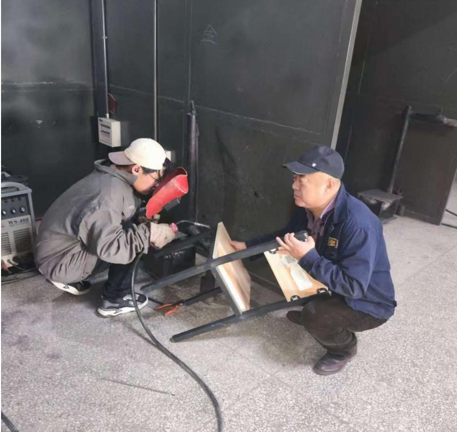 在机房维修现场,党员干部们化身“维修工匠”,针对座椅摇晃、螺丝松动等状况,逐一开展打磨、加固和修复工作,还在焊接基地对损坏较为严重的学生椅进行焊接修整,让30余把损坏座椅重焕生机,为师生营造了安全舒适的学习环境。维修过程中,党员干部们充分发挥智能制造专业优势,把课堂所学的理论知识转化为实践操作能力,既解决了实际问题,也为学生树立了学以致用的典范。