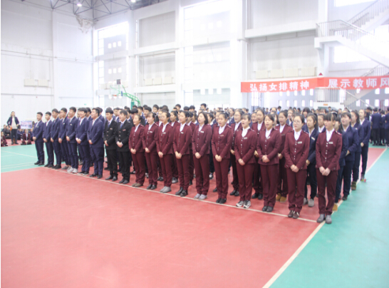 比赛中间,现代服务于艺术设计系同学们还表演了百人合唱《精忠报国》,2015级速录1班和速录师班的6名同学表演的舞蹈《青春与梦想》再次把全场的热烈气氛推向高潮。