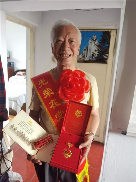 老党员高志接受勋章