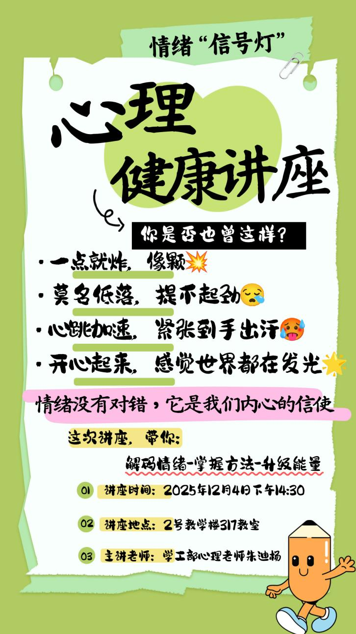 管理情绪 快乐生活丨学生工作部组织开展心理健康教育讲座