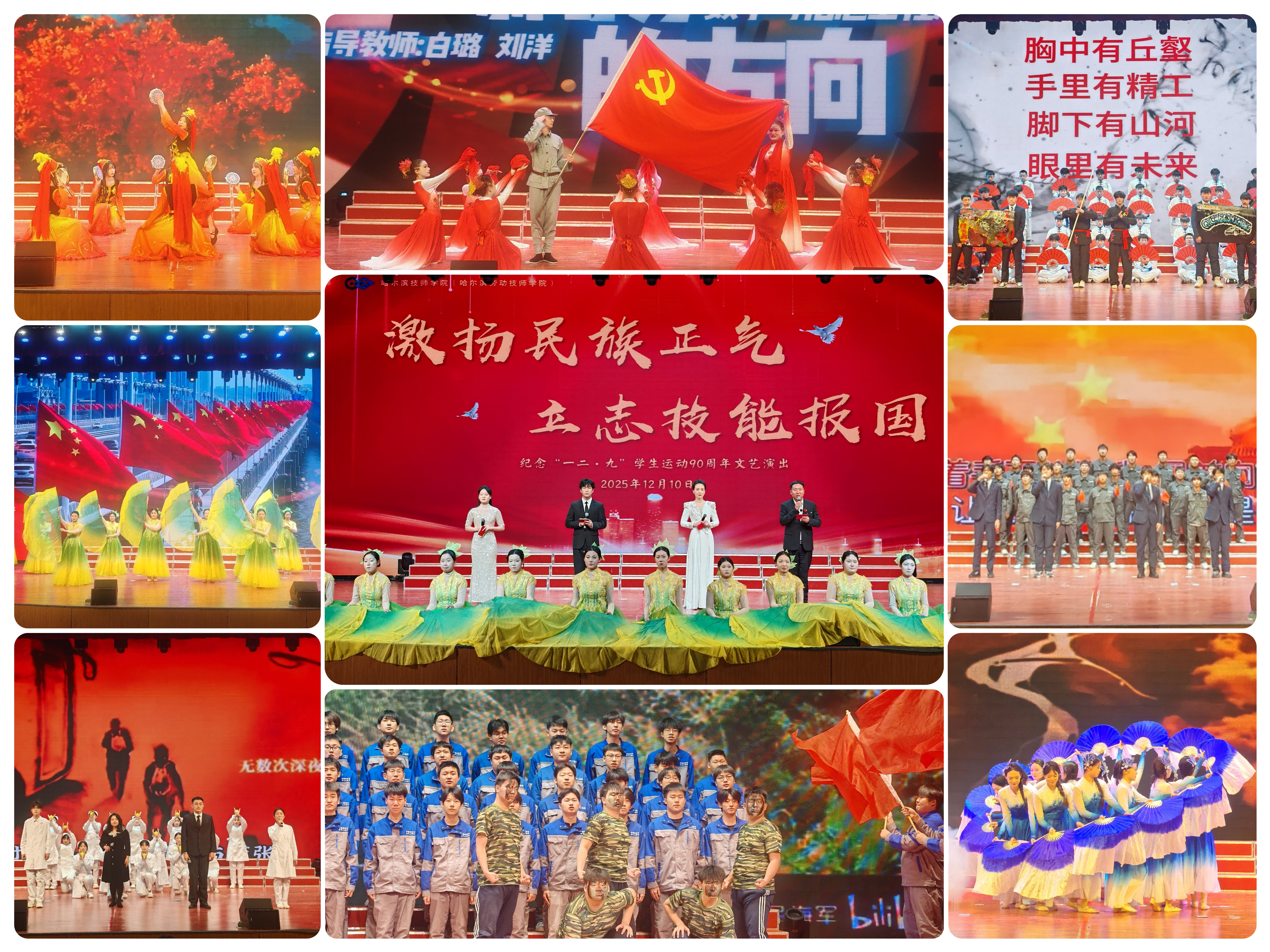 九秩风云激荡,九秩初心如磐。为缅怀“一二·九”学生运动中挺身而出的青年先驱,传承红色基因、厚植家国情怀,引导新时代技工学子以技能为翼、以报国为志,学生工作部于今年10月初开启“校园文化节”系列活动。12月10日,以“激扬民族正气 立志技能报国”为主题的纪念“一二·九”学生运动90周年文艺汇演为本届校园文化节画上圆满句号。全体师生齐聚一堂,在歌舞、朗诵、武术的交融中,回望峥嵘岁月,致敬青春力量,共绘技能报国的奋进蓝图。