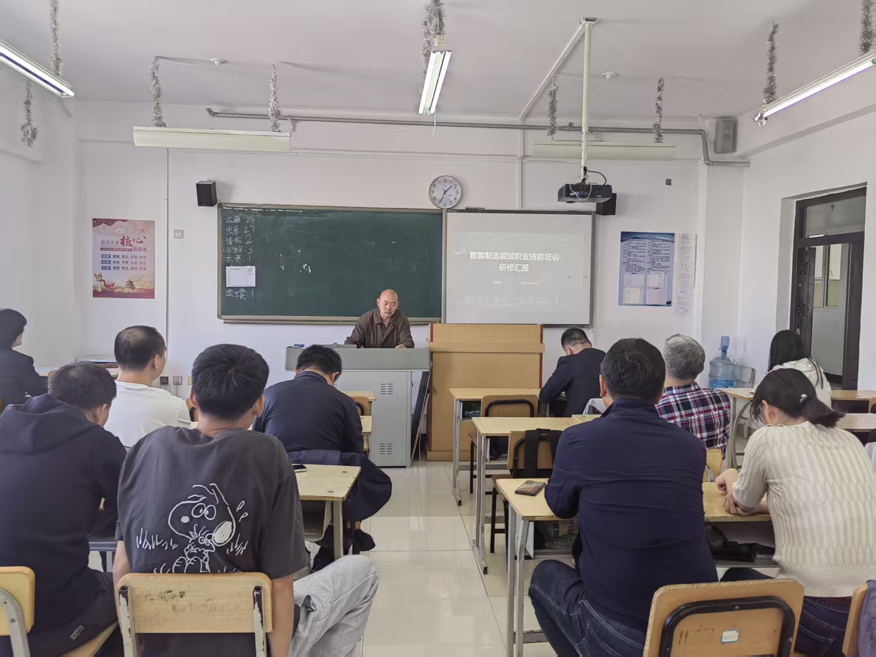 2025年8月17日至23日,我系教师王险峰老师参加了由人社部职业能力建设司主办、中国机械工程学会承办的智能制造工程技术人员师资研修班。该研修班旨在提高专业技能、拓展知识领域、提升创新水平,以支持战略性新兴产业发展,并推动数字经济与实体经济深度融合。回来后将经验与感想与全系老师进行了交流,9月26日开展了一次全系教研活动。