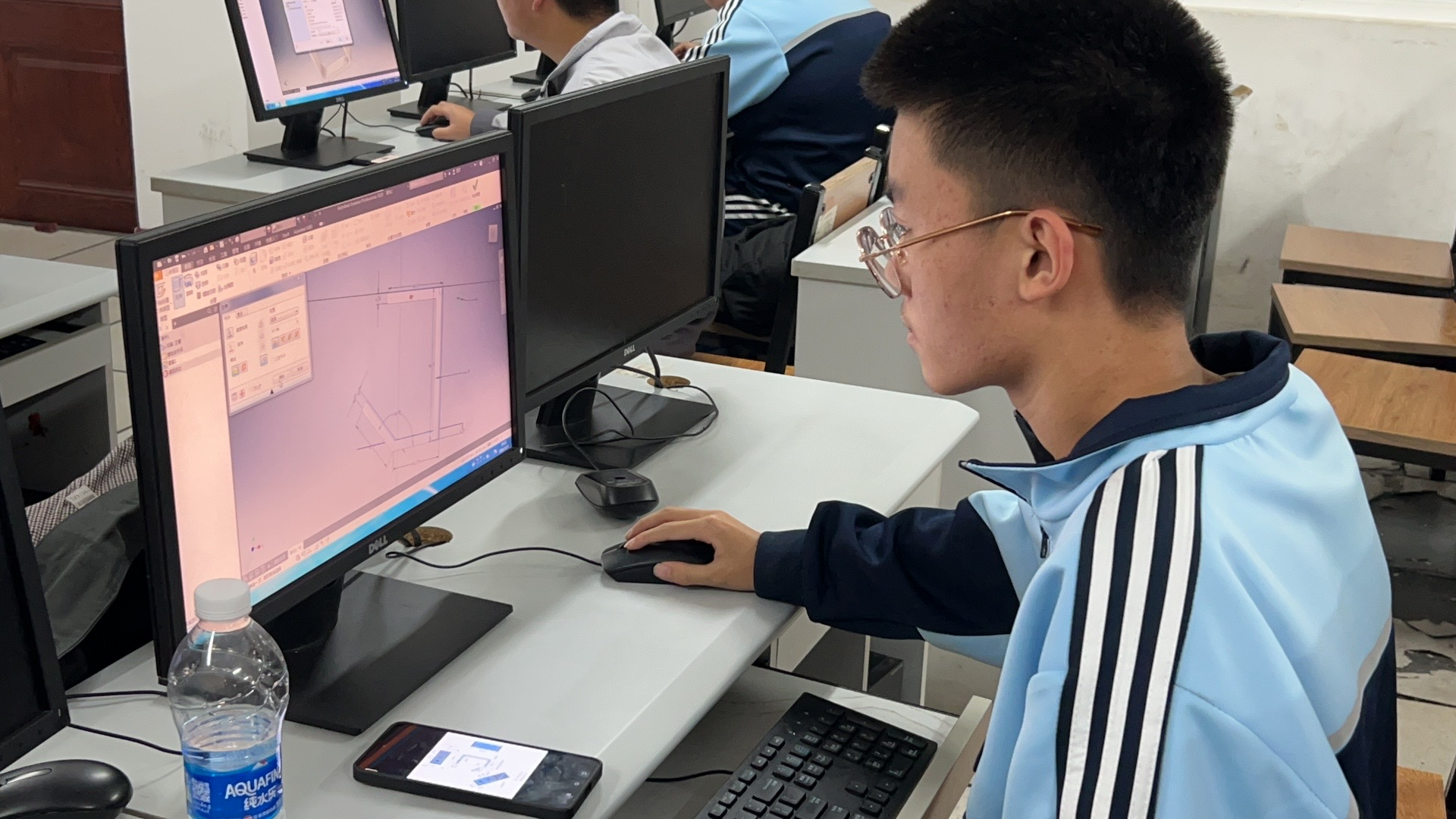 经过激烈角逐与评委组的严格评审,青训队学员路佳瑞、王宣芮、林云哲凭借精准的图纸绘制、高效的软件操作及清晰的设计逻辑脱颖而出,分获竞赛一、二、三名。评委组一致认为,2025级新生选手在竞赛中展现出的专业素养与技能水平,远超同期学生平均水准,充分体现了青训队培训工作的扎实成效。